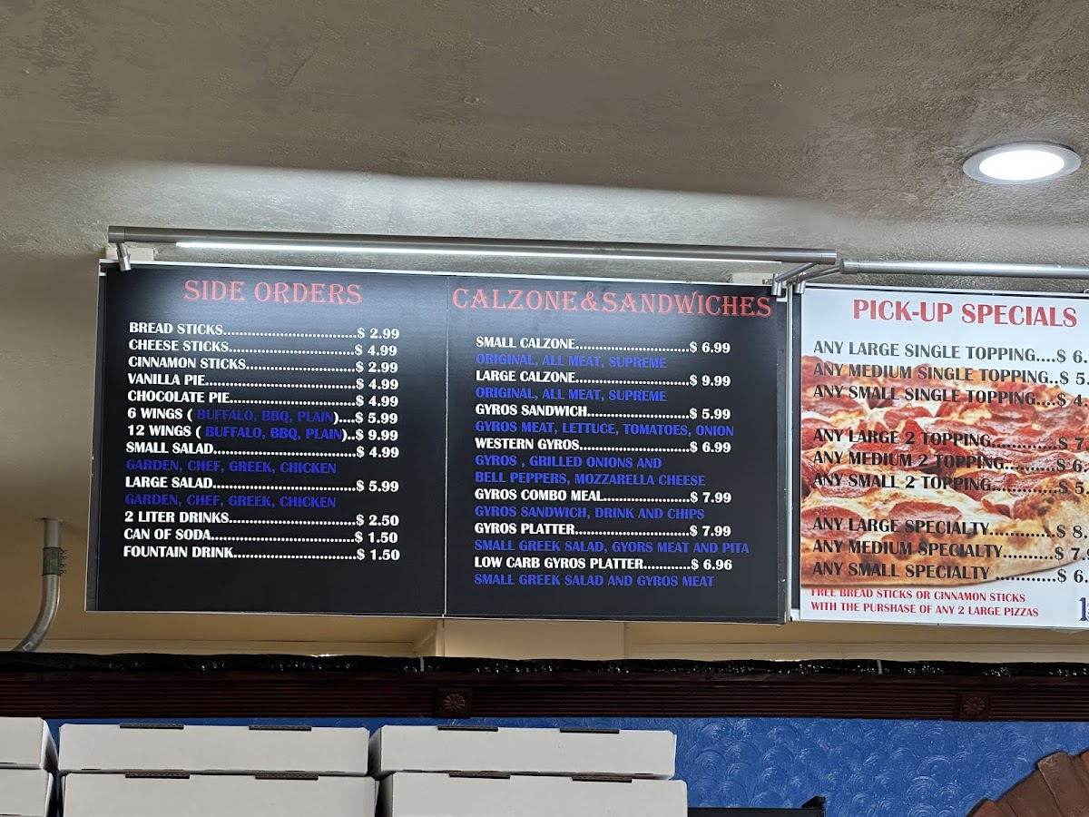 As a reviewer wrapping up my experience with the menu at Eagle One Pizza in Lexington, Oklahoma, I find it to be a well-rounded and satisfying selection that caters to a wide range of tastes. The heart of the menu clearly lies in its Specialty Pizza lineup, where classics and crowd-pleasers like Margarita Pizza, Hawaiian Pizza, Chicken Bacon Ranch Pizza, The Ultimate Meat Pizza, and The Original BBQ Chicken Pizza showcase bold flavors and generous combinations. For those looking for something different or lighter, the gyro selection stands out, offering options such as Low Carb Gyro, Gyro Sandwich, Gyro Platter, Western Gyro, and the convenient Gyro Combo (Includes Chips & Drink), which feels ideal for a complete, filling meal. Pizza lovers with dietary preferences will appreciate the Cauliflower Crust Pizza, while the dessert section under Sticks & Pies-including Vanilla Pie and Chocolate Pie-adds a simple but comforting sweet finish. To complement the food, the drink choices like Fanta Orange, Diet Coke, Sprite, Barq's Root Beer, and Coke cover all the familiar favorites. The salad offerings, such as Garlic Chicken Salad, Garden Salad, Greek Salad, and Chef Salad, help balance out the richer items, while calzone fans can choose from Supreme Calzone, All Meat Calzone, and Original Calzone for a hearty alternative to pizza. Finally, the Plain Wings round out the menu nicely as a classic, shareable option. Overall, Eagle One Pizza’s menu feels thoughtfully put together, combining variety, comfort, and flexibility, making it a solid choice for both casual meals and group dining.